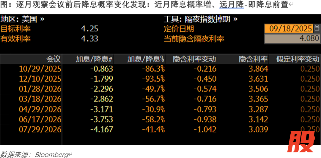 降息25bp基本上都在预期之内,市场关注焦点一个是是否会降低50bp,一个是后面的降息路径怎么走?直白的说就是年内是会降息几次?如果从决议后美联储的点阵图看是降三次75个BP,但实际上在会议结束后市场给出来的估值是年内降息概率并未增加,如果延长展望时间到明年6月来看降息次数(或者说概率)并未增加,而是降息前置了(也就是越靠近近月降息概率增加、远月降息概率反而下降了),也就是说整个的降息交易是往前提了,越是提前交易越意味着:近月美元的所谓长期利空越被更早的消化,美元越会提前筑底。